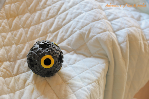 ま、こうして転がすと中に詰めたオヤツがこぼれ出るってヤツです。