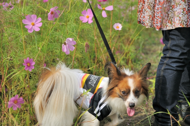 コスモス畑のなかで、ルイくん、いい笑顔ですね♪