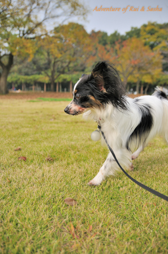 ふと見ると、ルイのおちりに落ち葉がくっ付いてました!