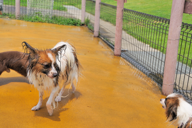 途中、先客の小さいパピヨンちゃんにガウられても