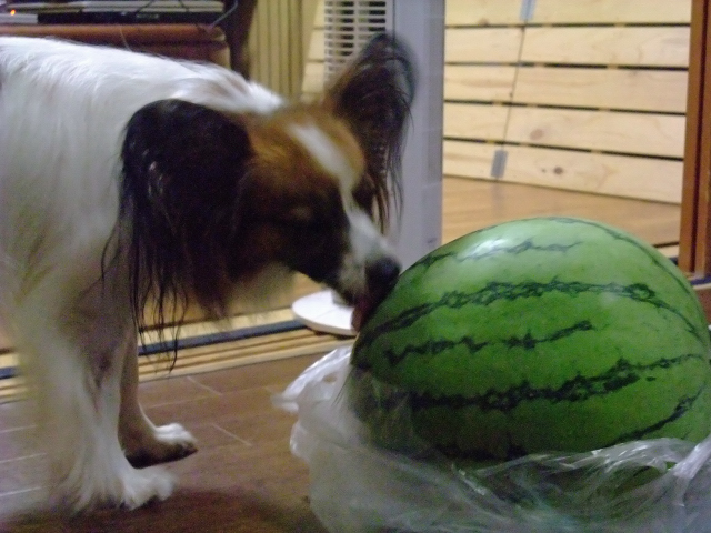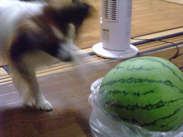 ルイくん、スイカをバシバシやっているのは、