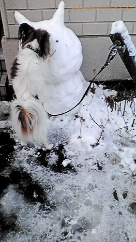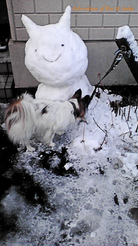 こたも1・2才の頃は散歩途中に雪だるまがあると、警戒して