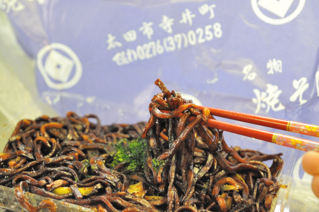 すっごいですね、黒い麺。これはイカスミでも入ってるんでしょうか?それとも蕎麦?