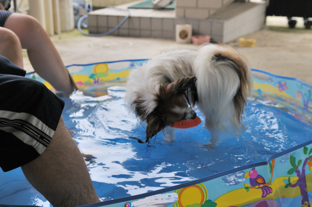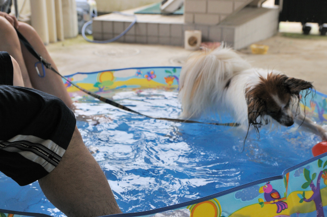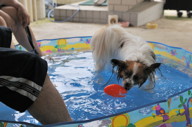 ルイも飼い主も楽しめるプールですね!
