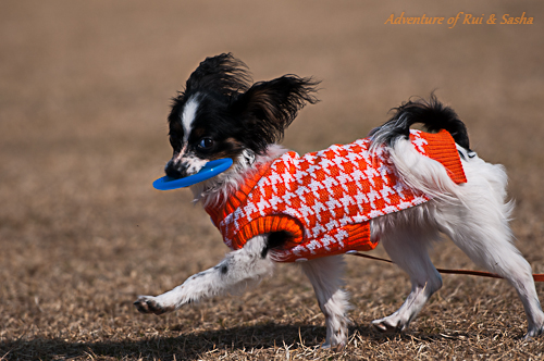 ディスクを加えて自慢げな表情のサーシちゃん♪