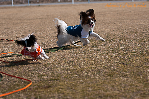 2匹で取り合う姿もほほえましいです。(本犬たちは真剣だろうけど)。