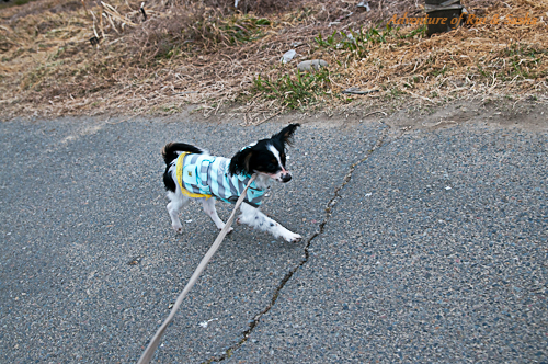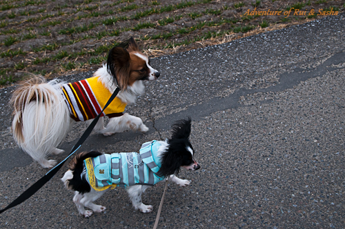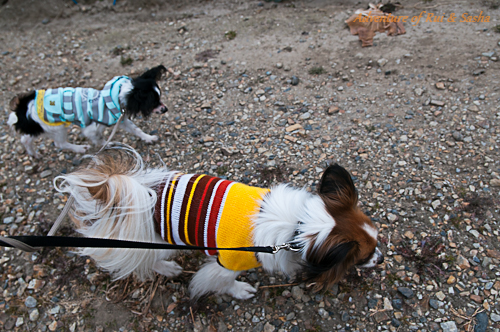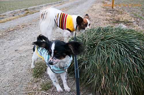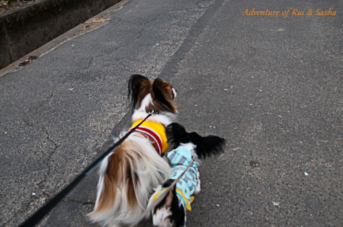 二頭で、右に左に位置を変えながら歩くので、気付くとリードがグルグル。