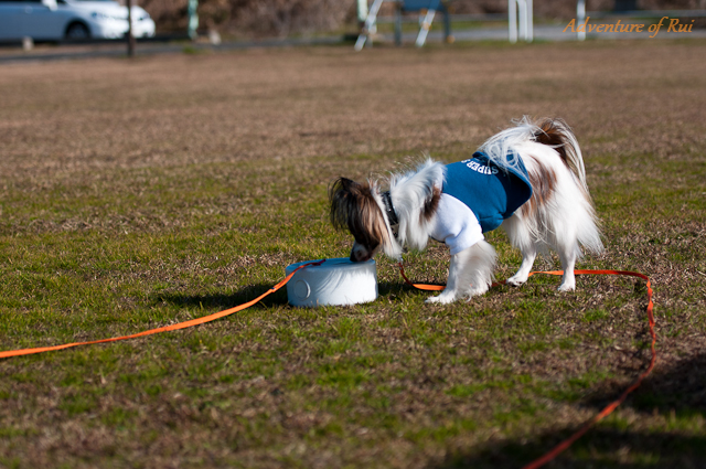 一杯走って、いい運動になったんでしょう。休憩のときは水がぶ飲み!