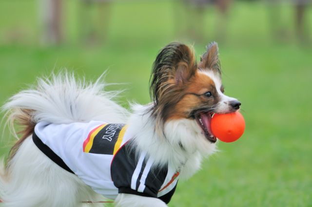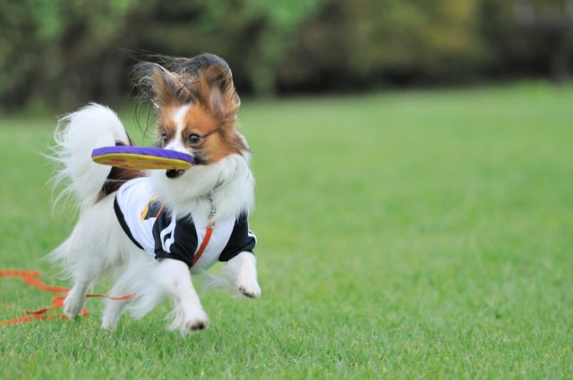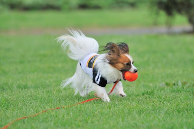 投げたボールを持ってくるルイ