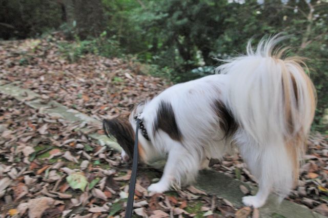 でも、いつもと違うのは、落ち葉とか落ちてて、まわりも木々が生い茂ってて