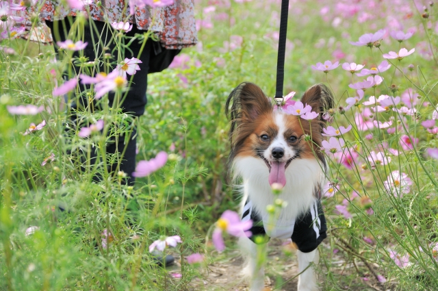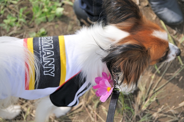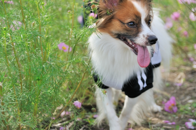 コスモス畑のなかで、ルイくん、いい笑顔ですね♪