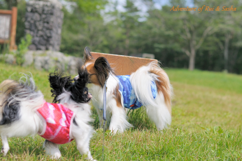 人間たちはへばって、ヒーヒー言ってますが、ワンコたちは全く堪えてなく
