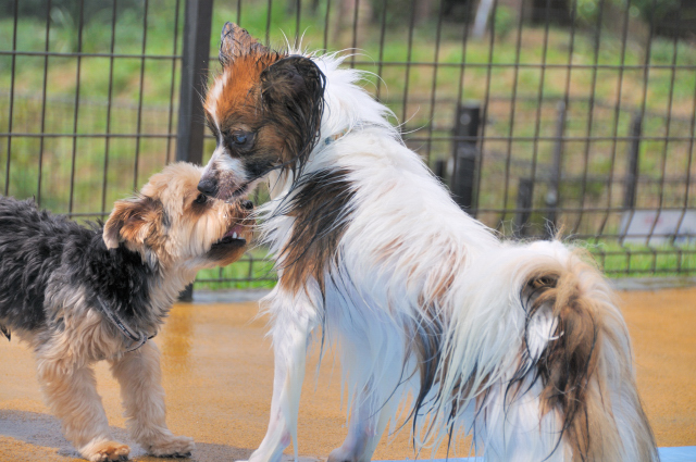 途中、先客の小さいパピヨンちゃんにガウられても