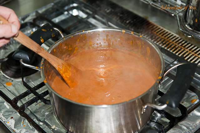 こうすると、煮詰まって味に深みが出てくるので、手を抜いては駄目です。