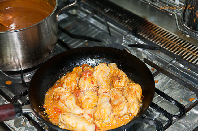 トマトケチャップ大さじ8を入れて、味を調え煮込みます。