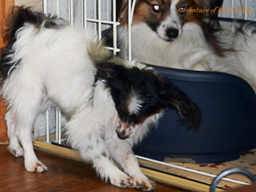 なぜか、ルイのサークルに身体を擦りつけてます。