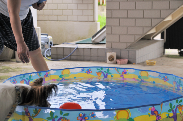 前回、プールから出ると、すっかり芝生をアホ走りしてたルイですが